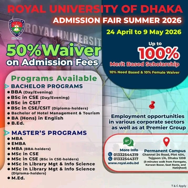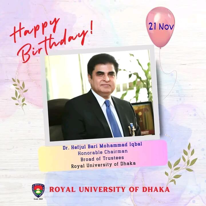 The Royal University of Dhaka (RUD) stands as an academic epicenter of excellence to the vision of its founder, Dr. Momtaz Begum(expired) and Dr HBM Iqbal, a dedicated philanthropist, tireless social worker and visionary leader. Established as a nonprofit and nonsectarian private university, RUD came into existence under the aegis of the Private University Act, 1992, of the Government of the People’s Republic of Bangladesh.