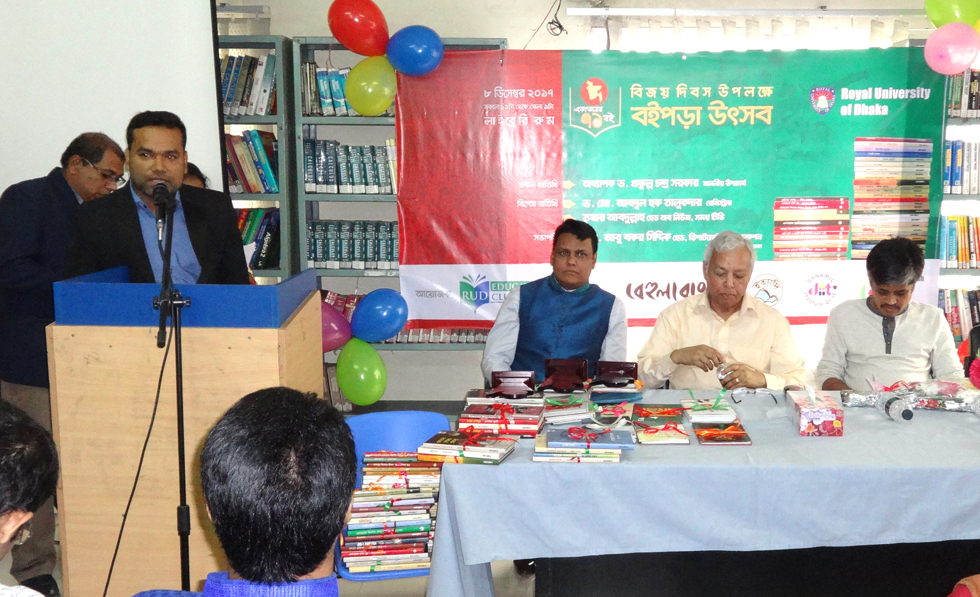 Book reading festivals and discussion held on the occasion of the Great Victory Day of Bangladesh. Celebrating the great victory day, Education Club of Royal University presented books at free of cost among the participants. The program held at the Library Seminar hall of Royal University of Dhaka at 11am on Friday. 71 books were distributed among 71 students of different departments of the university.
