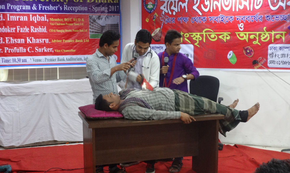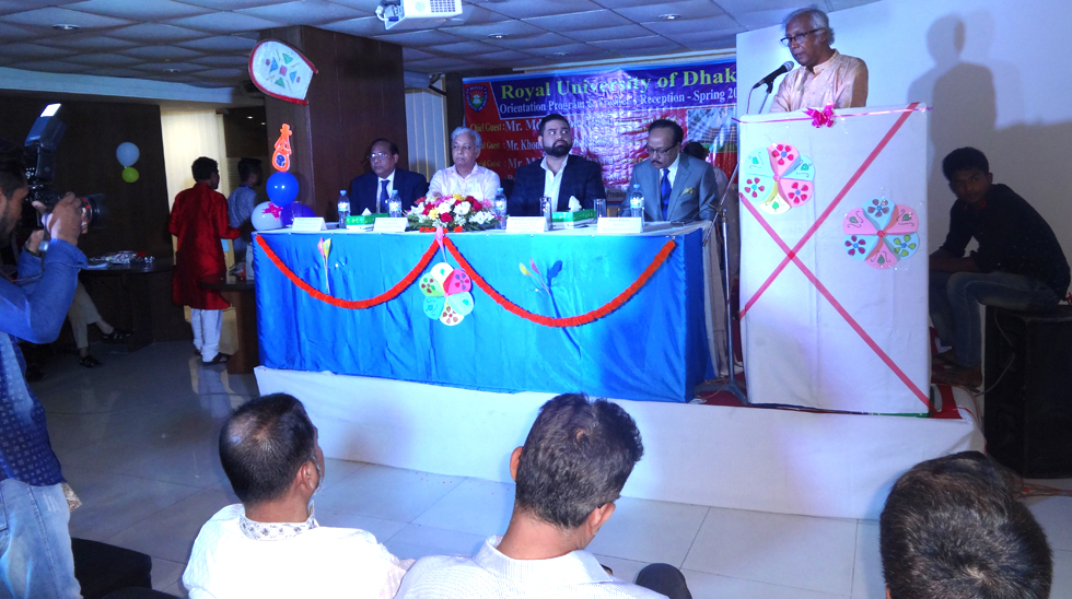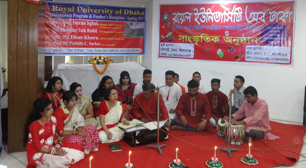 On the auspicious occasion of Pahela Boishakh, Royal University of Dhaka was also enlightened with the spirit of its own culture and heritage to celebrate the Bangla New Year 1424. The Orientation Program and Fresher’s Reception for the Spring 2017 Semester was also held on 13 April 2017 in Dhaka campus. The program was presided by Professor Dr. Prafulla C. Sarker, Hon’ble Vice Chancellor (Designate) of RUD. Hon’ble member of the Board of Trustees Mr. Imran Iqbal was the Chief Guest of this jubilant program.