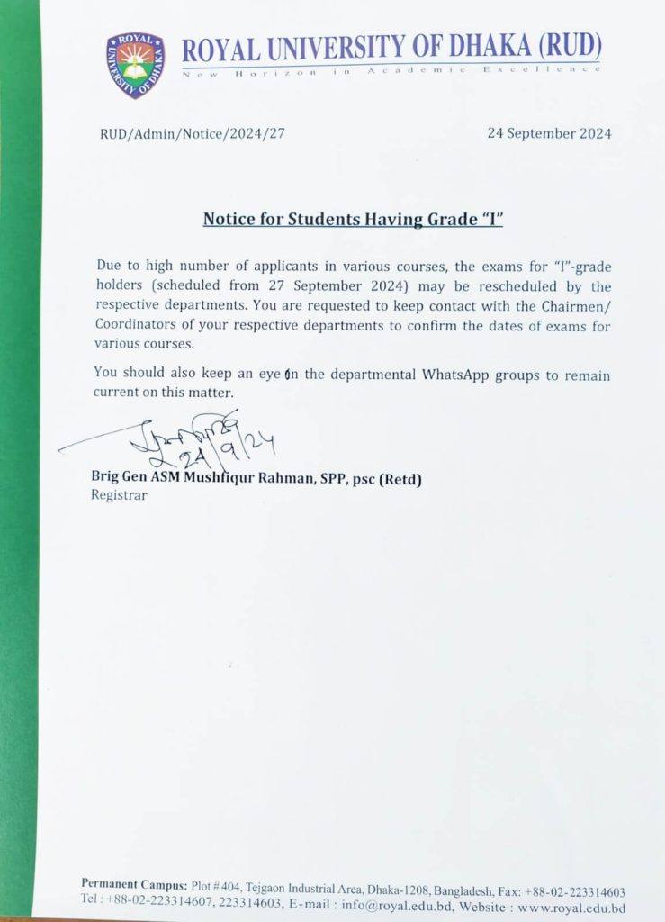 Reschedule The Exam for Students Having Grade “I”