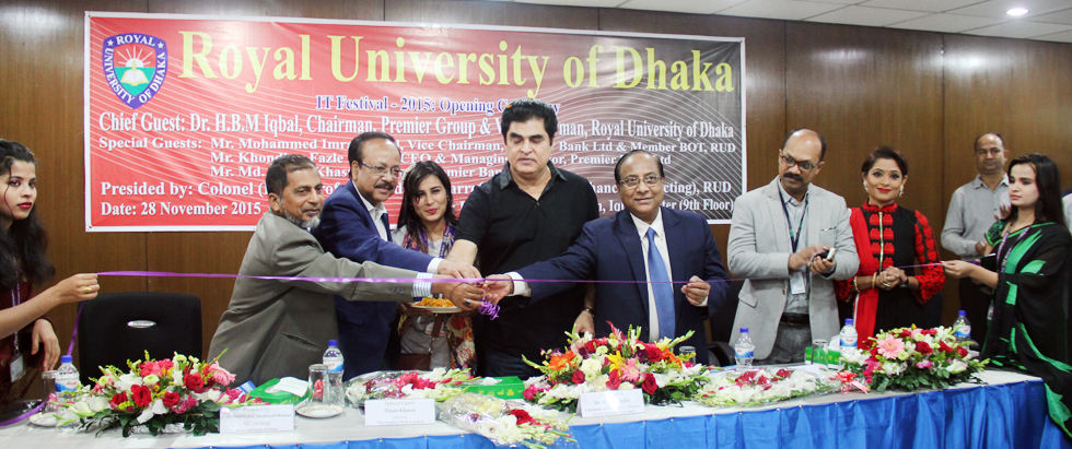 The festival was inaugurated by Dr. HBM Iqbal, Hon’ble Chairman of Premier Group and Vice Chairman of Royal University of Dhaka at the Iqbal Center’s Premier Bank Auditorium at 11:00 am. Mr. Khondoker Fazle Rashid, Managing Director, Premier Bank and Mr. Ehsan Khosru, Advisor, Premier Bank attended the program as Special Guests. Colonel (Retd) Professor Md. Mosharrof Hossain, Vice Chancellor (Acting), Royal University of Dhaka presided over the program.