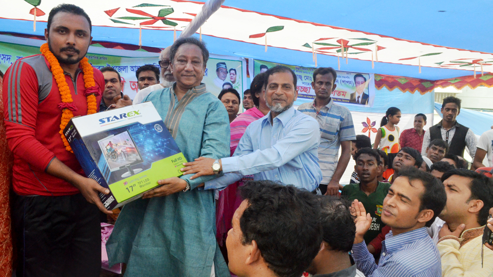 Mr. Nazmul Hassan Papon, MP, President, Bangladesh Cricket Board gave away prizes as Chief Guest. RUD team captain Hasan Shahriar receiving the prizes. Colonel (Retd) Professor Md. Mosharrof Hossain, Vice Chancellor, Royal University of Dhaka, Upazila Nirbahi Officer, Bhairab, RUD students, teachers, officers and thousands of local persons witnessed the final match.