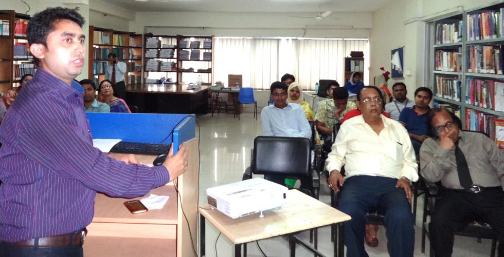 Keeping the above facts in view, Royal University Dhaka (RUD) arranged a number of presentations on various topics which were conducted by five (5) Faculty Members of different departments from 16 July to 19 July 2016 at RUD Library. The following Faculty members presented the topics mentioned against each: