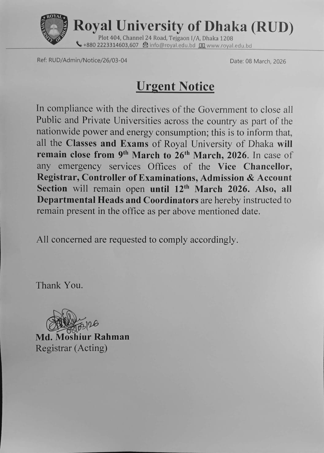 Urgent Notice